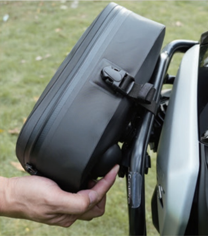 Montage rapide et simple : fixation magnétique à démontage rapide, sangles en caoutchouc et sangle de serrage garantissent un accès instantané. Chaque sacoche offre 2 litres de capacité pour outils, gants ou petits essentiels — toujours protégés, toujours accessibles.